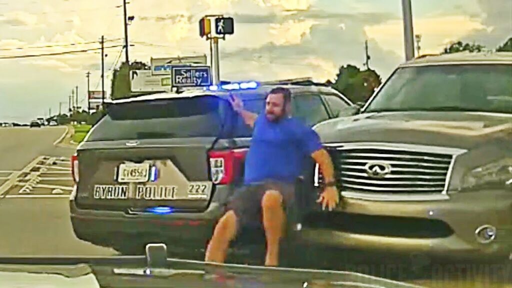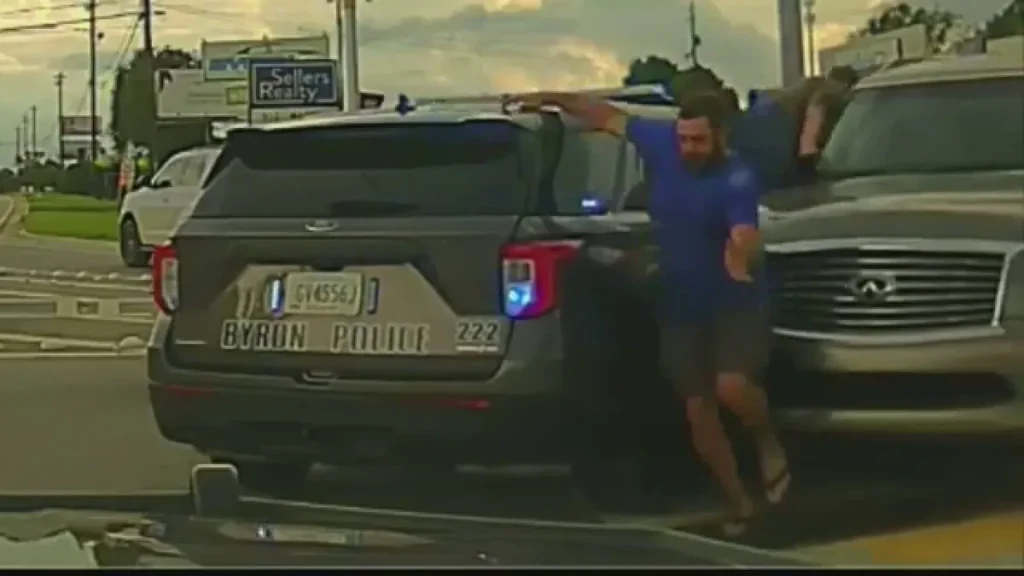 Officers responded to a call about an SUV that was driving into the oncoming lane of traffic on Georgia Highway 42 near Byron and nearly hitting other vehicles, Byron police said.