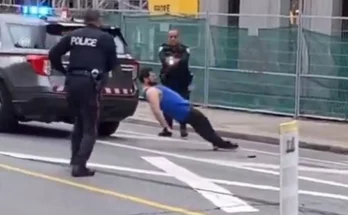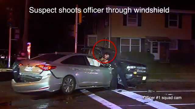 The video shows Lamb shot at the officer through the windshield. The officer, after being hit, ran to the other side of the crash scene. At that point, the suspect gets out of his vehicle.