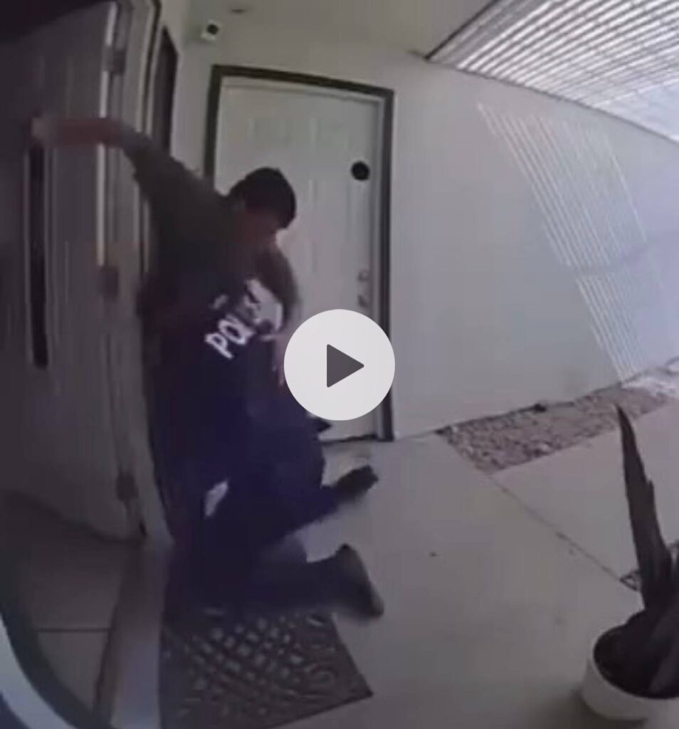 The video shows another officer running up to the fight and helping Ayala pin Sosa to the ground and a woman inside the house leaning over to get the knife out of Sosa’s hand.