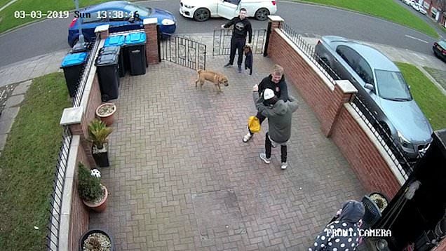 Trudy, 55, was sitting in the garden of her home in Middlesbrough with the toddler when the two men wandered into their front garden.