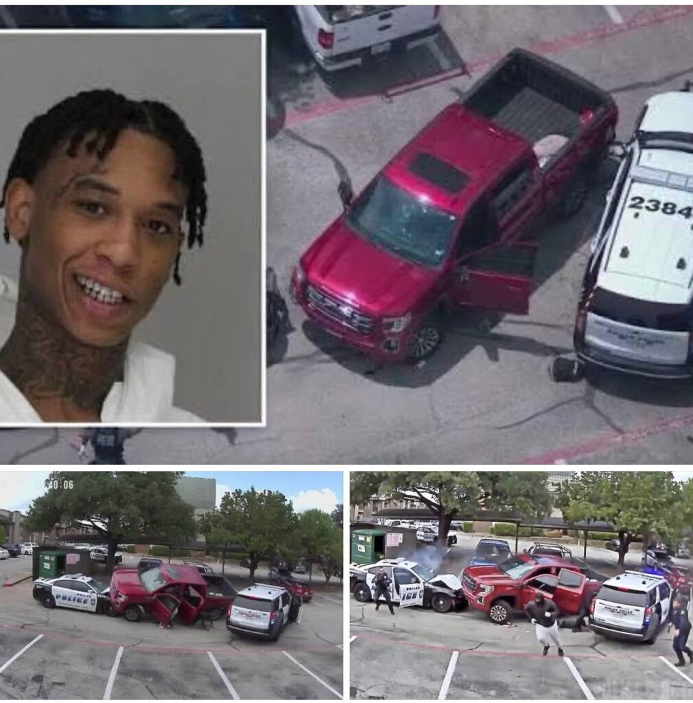Dramatic new video of last week’s police shooting involving a group of people in a stolen pickup truck shows the moments the stolen vehicle ran right on top of a Dallas police cruiser.