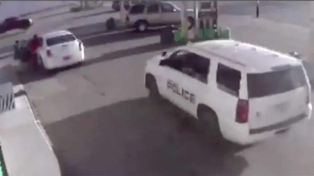 Tatum, who had outstanding felony warrants, had been earlier spotted running through a nearby cemetery and ignored commands to stop and to “drop the gun” he had been carrying, the clip shows.