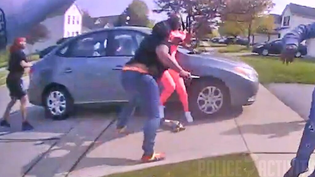 Bodycam footage provided by the police shows an altercation with a group of individuals outside a house before one of them – said to be Ma’Khia Bryant – appears to lunge at another member of the group with a knife in hand.