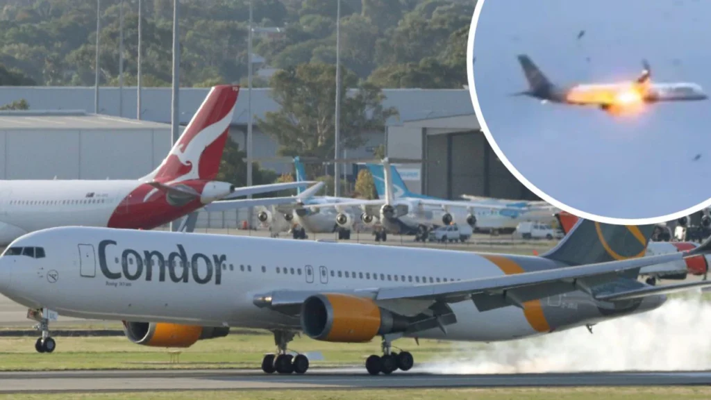 A Condor Airlines flight was forced to make an emergency landing in Italy after the plane’s engine burst into flames shortly after takeoff — prompting one terrified passenger to send out “goodbye texts” to loved ones.