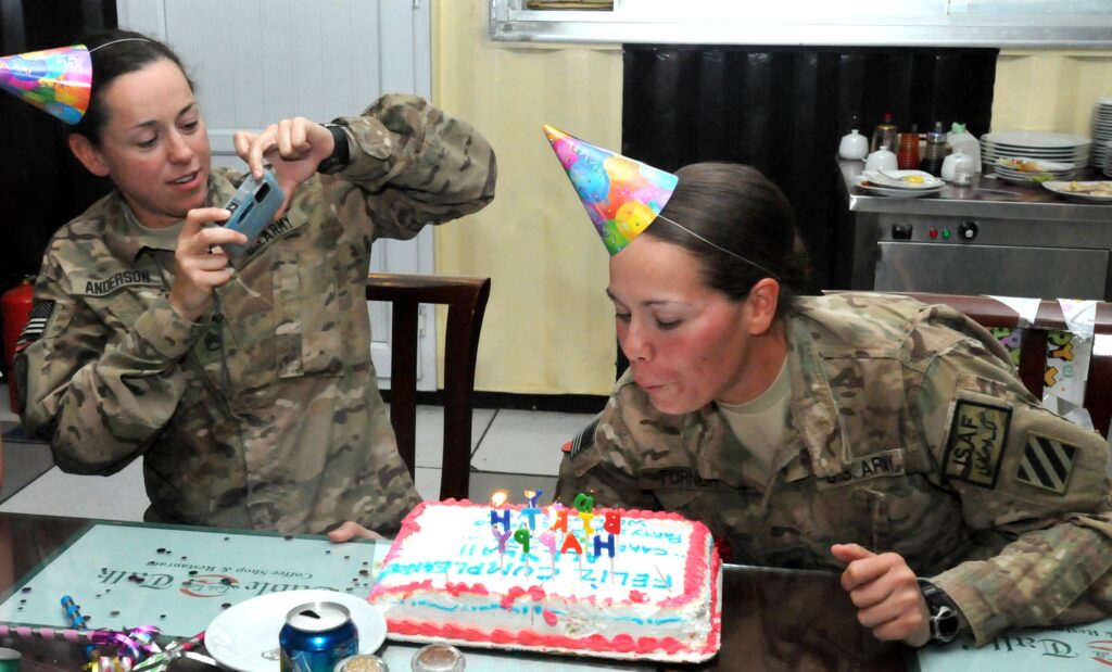 Turner, a paralegal specialist and female engagement team noncommissioned officer in-charge with 1st Battalion, 64th Armor Regiment, 2nd Brigade Combat Team, 3rd Infantry Division, celebrated her 26th birthday at Forward Operating Base Lindsey Oct. 23. Unlike most deployed soldiers celebrating birthdays downrange, however, Turner got to spend hers with family.