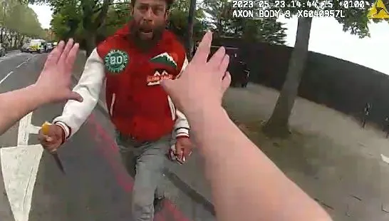 Knowing the man may have had a knife, the officers rushed to their vehicle and joined the chase.