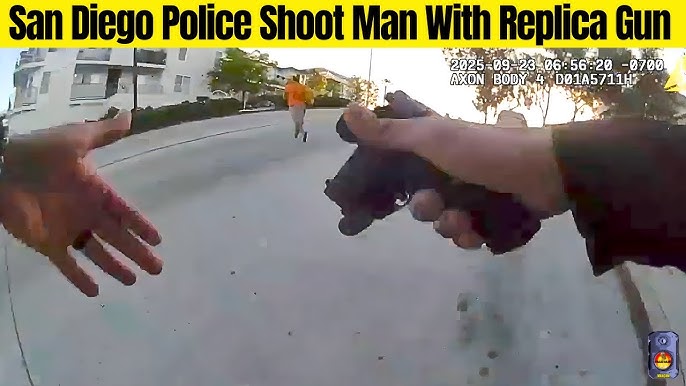 San Diego, California — On September 23, 2025, at about 6:30 a.m., San Diego Police received a 9-1-1 call reporting a man trespassing on the grounds of Fay Elementary School while children were present. The caller provided a description of the man, who was later identified as 41-year-old Huy Ly. The caller then informed the dispatcher that Ly was armed with a firearm and a knife. Officers arrived after the 9-1-1 call and located Ly. Officers are heard saying “Gun, gun!” after observing what appeared to be a firearm in Ly’s waistband. They attempted to communicate with Ly in English and Vietnamese, but he did not comply with commands. For several minutes, officers attempted to negotiate with Ly, but he did not comply with their commands. Officer #2 deployed less-lethal beanbag rounds, and a k-9 was utilized, but both tactics were ineffective in gaining his compliance.