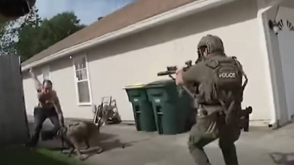 The video shows the scene when Klimenko is out of the house during the standoff. As Klimenko holds up a knife and attempts to stab the K-9, an officer stopped him by fatally shooting him.