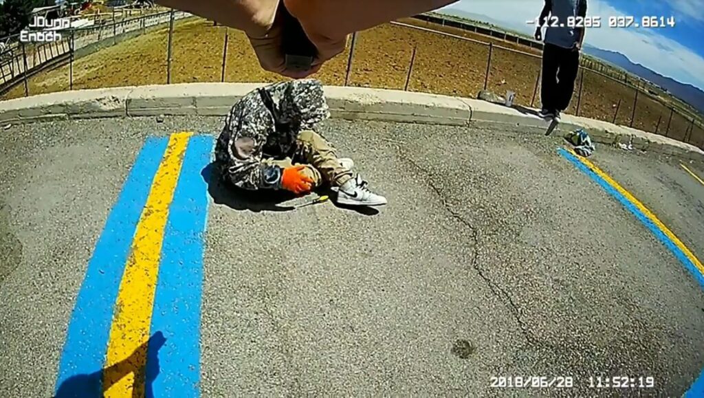 “She is not pointing the screwdriver at the officers, nor does she appear to be threatening them, although she is defiant and combative,” Iron County Attorney Scott F. Garrett said in a letter to the Enoch police.