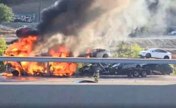Car-carrier truck loaded with Teslas causes hazmat fire on 5 Freeway in Sylmar Read More